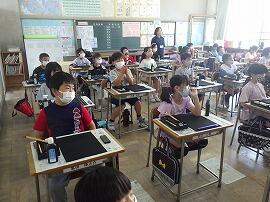 3年生になり新しく始まった習字は、5月の末から7月まで書写ボランティアさんと一緒に学習してきました。ボランティアさんから、筆の持ち方や墨の付け方、字の書き方などさまざまことを教えていただきました。ボランティアさんと一緒に習字をやるのは今回で終わりということもあり、最終日にはどのクラスでも別れを惜しむ声が聞こえてきました。夏休み明けからは、ボランティアさんのいない習字が始まります。ボランティアさんがいなくても頑張れるというところを見せたいですね。