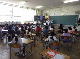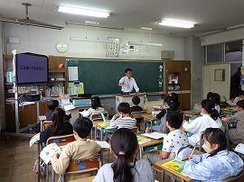 校長先生の特別授業「こん虫っておもしろい」の話をしていただきました。校長先生が好きなチョウの話やクワガタの頭・胸・腹の見分け方など写真を使って色々教えてもらいました。子供たちは,興味津々で楽しく授業を受けたりメモをとったりしていました。「質問がある人は校長室に来てもいいですよ。」の言葉を聞いて早速校長室へ行っていた子や校長先生と仲良くなった子がいました。