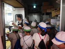 まず,店内とバックヤードに分かれて,見学を行いました。店内では,おすすめ商品にポップが貼ってあったり,商品の並べ方に工夫があったりと,たくさんの発見がありました。バックヤードでは,冷蔵庫や調理場などを見学させていただき,食品の品質を保つための工夫や,大量の商品を素早く並べるための工夫を知り,子ども達のメモをとる手が止まりませんでした。