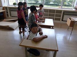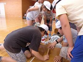 クラスごとに競い合って,素早く漢字を組み立てていきます。頭と体力を使うゲームでした。