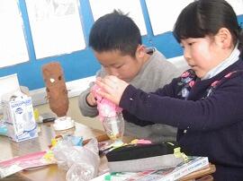 図工の時間では「ゆめいろらんぷ」を作っています。主に,ペットボトルと紙粘土を使ってオリジナルの夢いっぱいのらんぷ作りに励んでいます。