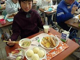 新型コロナウイルス感染症対策のため,例年の方法とは違い,あらかじめ選んだメニューを教員が配膳する形での実施でした。子ども達は大好きなメニューがお腹いっぱい食べれるとあって,とても楽しみにしていました。
