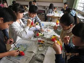 11月27日に宮っ子伝統文化体験ということで、黄ぶなの絵付け体験をしました。ふくべ堂の方に来ていただき、丁寧に作り方を教えていただきました。子ども達は熱心に色を塗り、自分だけのオリジナルの黄ぶなを完成させました。
