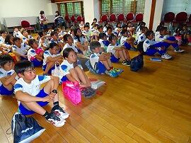 5月8日(月)5時間目に体育館で冒険活動教室の説明会が行われました。5年生の児童と保護者とが一緒に説明会の話を聞きました。最初に引率者の自己紹介から始まりました。続いて,