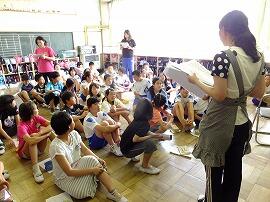 引き続き,校長先生からお話がありました。あいうえお作文「な・つ・や・す・み」で休みの目当てをわかりやすく話してくださいました。そして,最後に児童指導の先生から休み中に,注意すること,気をつけたいことを聞きました。