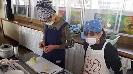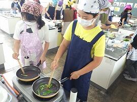 野菜炒めの調理実習を行いました。野菜を切って,フランパンで炒めます。ニンジンの皮むきや,ピーマンの種取など手際よく行う子と,必死に行う子に分かれていました。普段は,野菜を食べない子も,自分の作った野菜炒めをおいしいといってよく食べていました。調理実習にも慣れ,片付けなども分担し手際よく行えました。