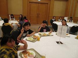 夕食は有明ワシントンホテルです。子ども達が大好きなメニューがたくさんあり,時間にもゆとりがあったため,楽しい食事となりました。