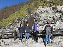 出発式を行い,まず最初の目的地は「奥の細道の名勝地」に国で指定されている殺生石です。火山性ガスが噴出する場所であるため,辺りには特徴的な匂いが漂っていました。