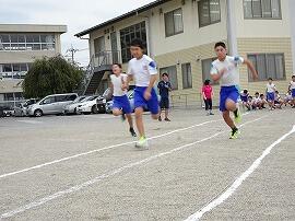 リレー練習では,1回目リードが大きすぎて追いつかなかったり,次の走者がスピードを緩めてしまったりと失敗が目立ちましたが,2本目は,うまくいかない点が修正されてスムーズなバトン渡しができました。どのチームもタイムを1秒から2秒近く縮めることができました。さらに記録が更新できるといいですね。