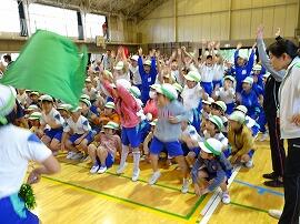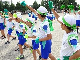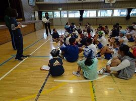 最後に,運動に参加した中学生と小学生が向かい合い,「ありがとうございました。」のあいさつをしました。黒川校長先生から生徒会会長にお礼の一言があり,中学校の佐々木校長先生からは,6年生に向けて「このような自主的な活動はとても大切ですね。6年生は来年中学校で待っていますよ。」という言葉がかけられました。8時までの30分間という短い時間でしたが,小学校と中学校が同じことで交流できるとても有意義な活動となりました。