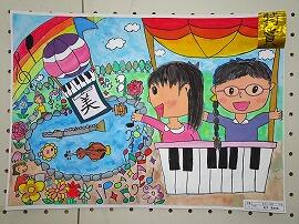 【特賞】1年生「海は,ぼくの楽しい友だち」 【金賞】2年生気きゅうにのってぼうけんしよう