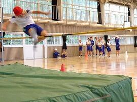 走り幅跳びの子は砂場で,カラーコーンを使って高く跳ぶ練習を何回かしました。そのあと,フォームを確かめるように飛んでいました。走り高跳びの子は体育館で別メニューで練習をしていました。