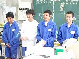 今週一週間,宮チャレで宝木小学校に来ていた宝木中の2年生4名が職員室で最後のあいさつをしました。5日間,小学生と一緒に生活し,勉強を教えてくれたり,給食や掃除の面倒をみてくれたりしました。とても慕われる4名の中学生でした。「宝木小での経験をいかせるようにがんばっていきたいと思います。」という力強い感想を述べていました。ぜひ,すばらしい先生になって戻ってきてください。待っています。