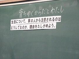 4時間目には,4年3組で保健「育ちゆくからだとわたし」の公開授業が行われました。普段,家の人から注意されることから,調べたい課題を設定しました。すいみん,食事,運動(遊び)に分けて課題を出し,本時では図書資料を使って友達と一緒に調べていきました。毎日言われていることなので,児童にとって切実な問題なので興味を持って取り組むことができました。自分の生活を見直す良い機会になりました。