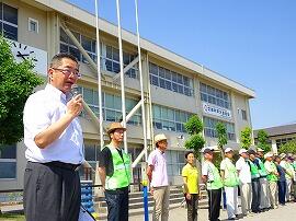 5月22日(月)の放課後,今年度初めての一斉下校が校庭で行われました。校庭には,いつも登校や下校を見守ってくださっているスクールガードリーダーの方々がお見えになっていました。今年初めてなので,児童とスクールガードリーダーの皆様との顔合わせをしました。「よろしくお願いします。」とみんなで声を合わせて言いました。校長先生からのお話を聞きました。「いつもスクールガードリーダーの方にはお世話になっています。ありがとうございます。」お話の後,さよならをしてスクールガードリーダーの方と一緒に帰りました。これからもどうぞよろしくお願いします。