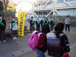 今日は,陽西中学校生徒会のみなさんとあいさつ運動を実施しました。
