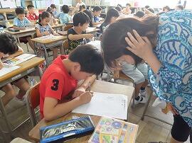 7月20日(水),今日は子どもたちがわくわくして待っていた生活科の「生き物ランド」の日です。学校に来る時から,虫かごや水槽を持ち,うきうきしながら登校してきました。3・4時間目が待ちきれないようでした。