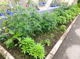 マリーゴールドやホウセンカといっしょに育ててきたひまわりも教材園で大きく育っています。つぼみは,まだ大きくありません。夏休みには大輪の花を咲かせることでしょう。