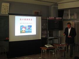 2・3時間目に歯の健康教室が行われました。鈴木歯科医院の鈴木先生と歯科衛生士4名さんの方が3年生のために来校して,”歯”のことについていろいろ教えてくださいました。