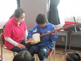 後半は,一人一人実際に三味線を弾かせていただきました。初めは緊張気味だった子どもたちも,ベンベンと良い音を出せるようになると笑顔を見せ,音色を味わっていました。