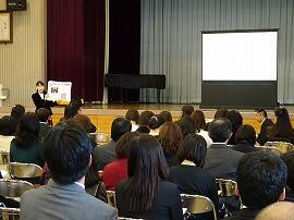 続いて,公開授業が行われました。3年4組の国語「世界の物語をしょうかいしよう」の授業です。自分の読んだ外国のお話を友達に紹介する学習です。お話のあらすじ,おもしろさや楽しさを互いに伝え合いました。聞いた後は,質問したり,感想を言ったりしました。