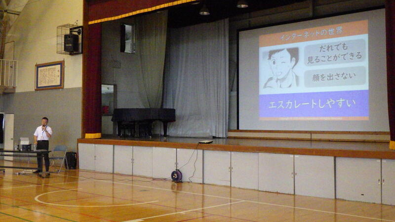 17日(水)の5校時に、KDDIスマホ・ケータイ安全教室認定講師の先生をお招きし、SNSトラブルトラブル防止出前講座を行いました。スマートフォンや携帯電話、インターネットを利用する際に守ってほしいルールやマナー、覚えておいてほしいトラブルや事件・事故の事例をもとに、分かりやすく説明がありました。友だちと一緒にどんなところに問題があったのか真剣に考えたり、自分に置き換えて気を付けるべきことを発表したりする、生徒の姿が見られました。