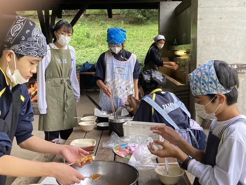 今日から、1年生は冒険活動教室です。秋らしい涼しい朝となりましたが、笑顔一杯で元気に学校を出発しました。入所式後、登山、班別選択活動を行いました。冒険活動教室1日目の生徒の様子を写真で紹介します。
