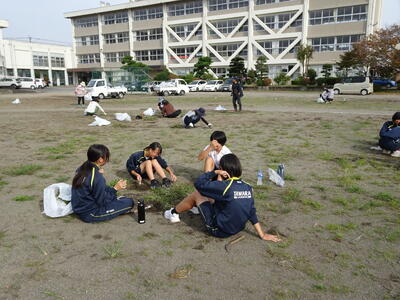 夏休みをはさんで草原のようになっていた校庭ですが、10月の駅伝大会や11月の長距離走大会に向けての準備ができました。