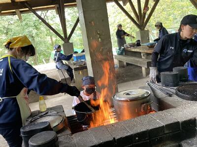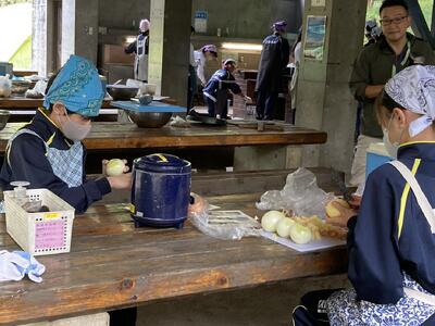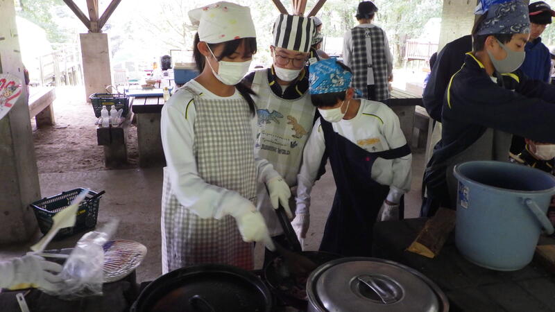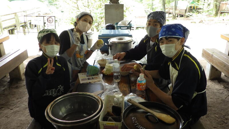 今日は、野外炊飯、学級別選択活動、そして、田原小学校・田原西小学校と合同でキャンドルファイヤーを行いました。冒険活動教室2日目の生徒の様子を写真で紹介します。