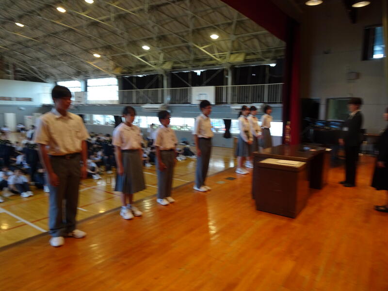 生徒一人一人がそれぞれの目標に向かって一生懸命に過ごした1学期が本日で終わりました。終業式の前に「宮っ子心の教育表彰」「新体力テストS認定証」「県総合体育大会」「関東中学校陸上競技大会」「宇河地区新人大会」「県新人水泳競技大会」「ピティナ・ピアノコンペティション」「県学生音楽コンクール」「県吹奏楽コンクール」「宮本杯争奪大会」の表彰を行いました。終業式では、各学年代表生徒の発表があり、1学期の振り返りと今後の抱負を立派に発表しました。校長先生からは、【「脚下照顧」という言葉から、「自分の足元をよく見て、自分を振り返る」ことが大切だ】【どの学年も様々なことに挑戦し、大きく成長してきた】【今後も更に成長した姿が見られることを期待している】との話がありました。