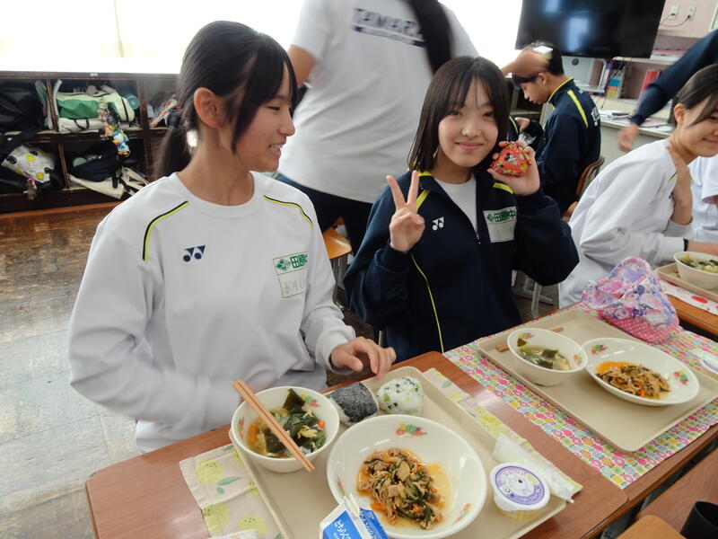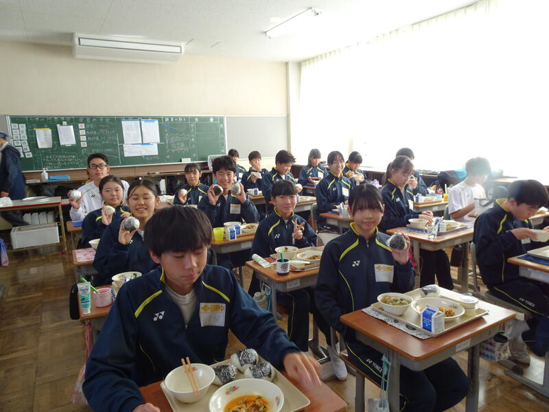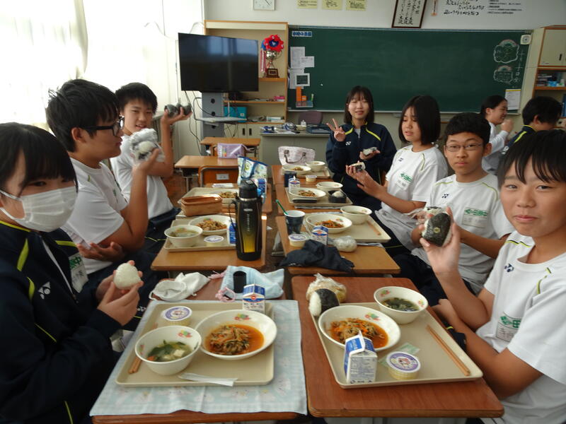 10/10(金)「おにぎりの日」を実施しました。田原小、田原西小も一緒です。(地域学校園一斉実施)食事について、親子でともに考える機会とし、生徒の食への関心を高め、感謝の心を育むことを目的としています。事前に、学級で「おにぎりの日」がんばりカードを利用し、自分で作る計画等を立てました。当日は、さまざまなおにぎりがあり、楽しい給食の時間となりました。
