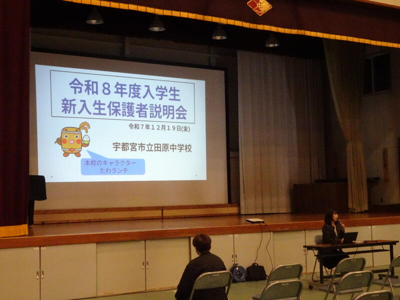 12月19日(金)、令和8年度入学予定者対象「新入生保護者説明会」を行いました。学校長のあいさつから学校概要の説明、中学校の生活や学習について、食物アレルギーや事務関係、そしてPTAについてなどの話がありました。保護者の方々は熱心に耳を傾けていました。1月16日には小学校6年生の中学校訪問があります。教職員一同、新入生のご入学を心待ちにしています。