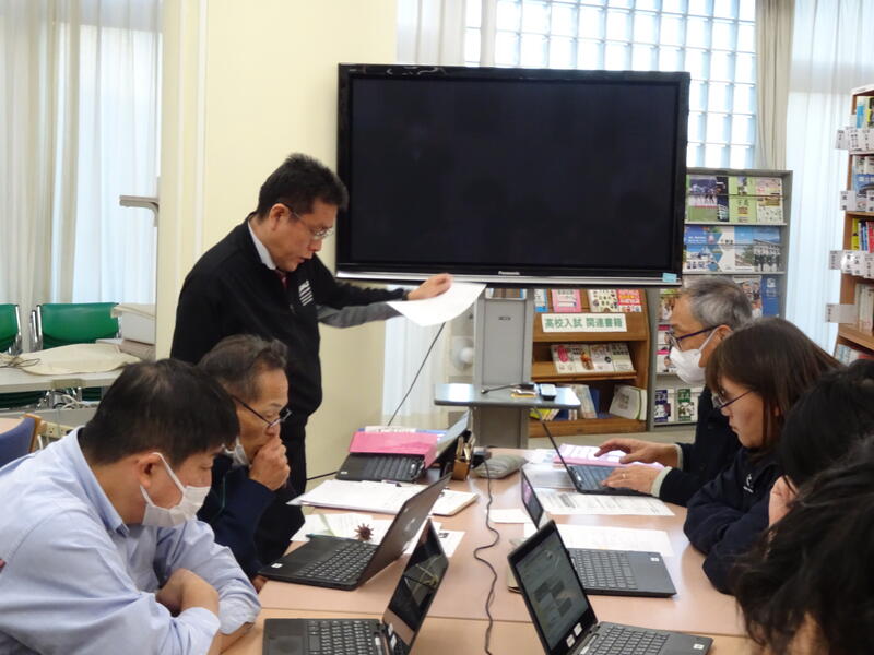 12/5(金)、学力向上コーディネーターを迎えて、先生方の授業を参観していただき、放課後に研究協議を行いました。今回で学力向上コーディネーター訪問は6回目になります。研究協議では、グループに分かれて授業改善プランへのこれまでの取組等についての話し合いを持ちました。コーディネーターからの指導助言を受け、先生方の指導力向上に向けて、熱心に研究協議を行いました。先生方も、授業力向上のために頑張っています。