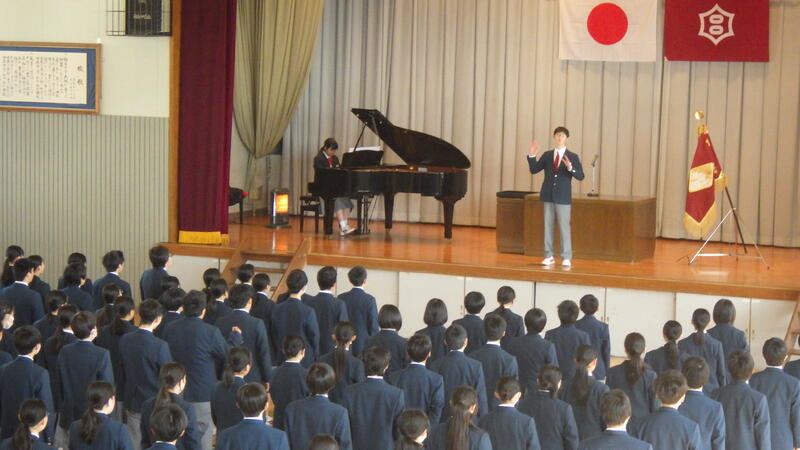 3月6日(金)午後の時間を使って、歌の練習と礼法指導を中心に卒業式の練習を行いました。歌の練習では、君が代、式歌の「旅立ちの日に」と校歌を練習しましたが、練習を重ねるたびに上手になっていくのがわかりました。3年生はさすがに声がしっかりと出ていました。1,2年生は卒業生のために気持ちを込めて歌っているのが伝わってきました。来週、立派な卒業式になることを期待しています。