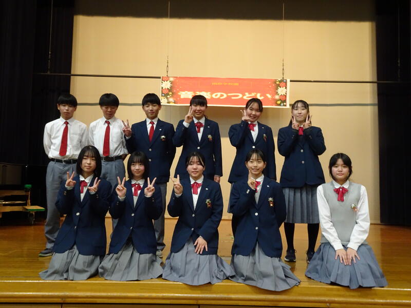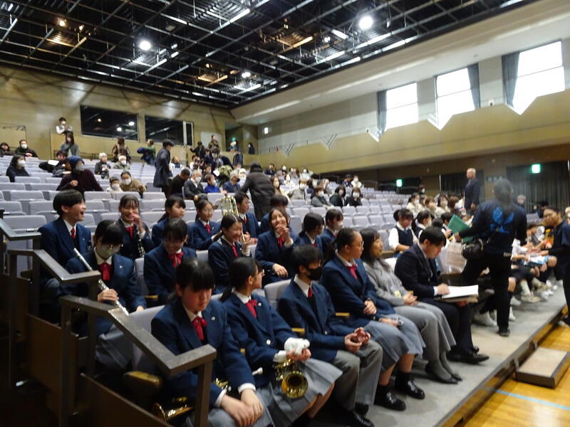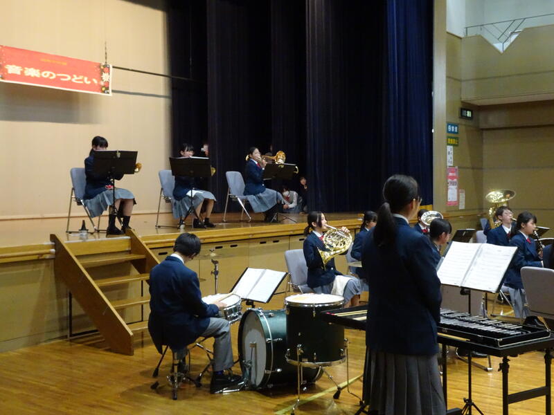 12月6日(土)に県教育会館で行われた、県央地区アンサンブルコンテストに吹奏楽部のサクソフォン三重奏、管楽8重奏、金管6重奏が出場しました。サクソフォン三重奏は「エンパシー」、管楽8重奏と金管6重奏は「中世・ルネサンス組曲~さまざまな編成のバンド、アンサンブルのための」を演奏しました。結果は,サクソフォン三重奏「金賞」、管楽8重奏「金賞」、金管6重奏「銅賞」でした。サクソフォン三重奏は12月26日(金)に行われる県アンサンブルコンテストに県央地区代表として出場することが決まりました。応援にかけつけてくださった保護者の皆様、ありがとうございました。引き続き、県アンサンブルコンテストの応援もよろしくお願いします。