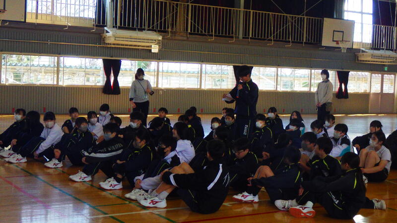 今朝、体育館にて生徒会朝会が行われました。まず、生徒会長からGCR活動(あいさつ・清掃・読書)についての話があり、次に図書委員会、給食委員会の発表がありました。それぞれの委員会で、タブレットを使って資料を作り、クイズを交えながら、活動内容について説明しました。生徒たちは発表をよく聞いていました。生徒会の積極的な活動が学校の活性化につながります。今後も頑張ってほしいと思います。