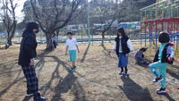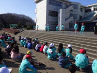 ファミリー班活動を行いました。今回は1班から6班が校庭,7班から12班が各教室で活動しました。校庭は北風が吹いてとても寒かったですが,子供たちは今日も元気いっぱいに活動していました。