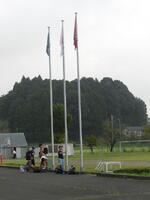 国旗掲揚塔の修理が終わり,毎朝運営委員会の児童が国旗,市旗,校旗を掲揚しています。まだ日差しは強いですが,青空の下,秋の風に吹かれて,三枚の旗が大きくたなびいています。