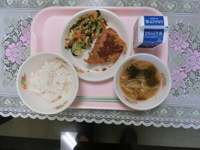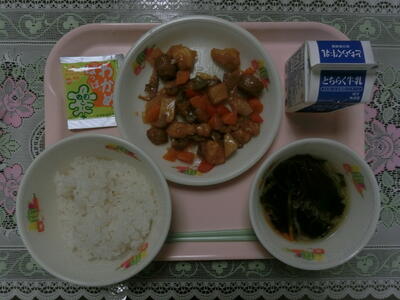 献立:わかめご飯 牛乳