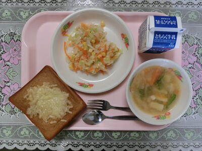献立:チーズトースト 牛乳
