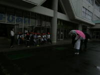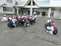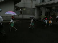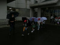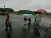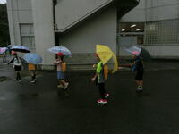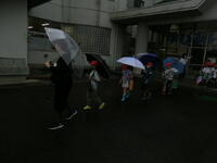 2年生が生活科の学習で町探検に出かけていきました。雨が降り始めてあいにくの悪天候となりましたが,子供たちは元気いっぱい。
