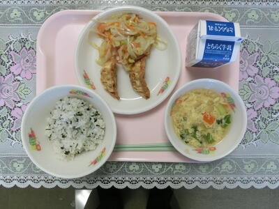 今日は節分です。給食では,福豆が提供されました。また,今日は、6年生が家庭科の「こんだてを工夫して」という授業で考案した献立(豚汁)が提供されました。6年生が栄養のバランスや彩り,旬の食材等を考えながらグループごとに考えたものを,栄養士の先生と調理員さんが調理してくださる,例年実施している取組です。今日から6回に分けて「6年生考案献立」が提供されます。給食の時間には,6年生の献立アピールポイントも放送されるので,そちらも楽しみです。