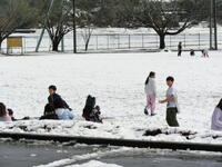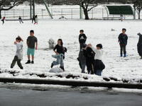 朝方から降った雪で広い校庭が一面の銀世界になりました。2時間目やはつらつの時間に,子供たちは雪だるまをつくったり,雪合戦をしたりと,校庭に元気いっぱいの声が響きわたりました。桜のつぼみが膨らみ始め春の息吹が感じられる中,子供たちは思いきり雪遊びをして冬の名残を楽しむことができました。