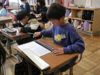 3月6日(金)と9日(月)には,そろばんが堪能な地域の方が学習支援ボランティアとして授業に参加してくださいました。子供たちは,担任の説明を聞きながら,テレビに映し出されるボランティア先生の手元を見てそろばんを操作しました。簡単な問題からトライして少しずつ難しい問題にもチャレンジしました。じっくりとそろばんを操作する子,「できた!」とどんどん計算を進める子,皆自分のペースで楽しそうにそろばんの学習に取り組むことができました。