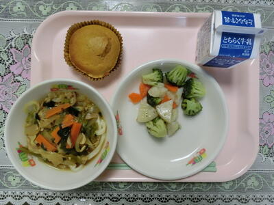 献立:カレーうどん 牛乳