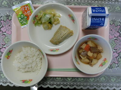 今日は,児童が学校農園で育てたさつまいもがたくさん入ったシチューが提供されました。ホクホクした食感でとても甘いさつまいもでした。自分たちで育てたさつまいもを,みんなおいしそうに食べていました。きっと格別においしかったことでしょう。