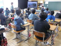 講話では,県内外のこれまでの災害の写真が示され,5年生児童は災害の恐ろしさを目の当たりにしました。また,災害時の様子に加え,消防の仕事,災害予防,災害応急対策,防災の三大要素である自助・共助・公助など,興味深い内容について分かりやすくお話していただきました。児童各自の課題設定に向けて大変有意義な内容で,児童の防災意識向上につながっていくことと思います。