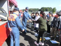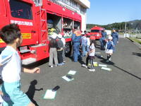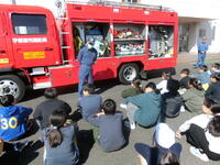 授業の後半は校庭に出て,ポンプ車体験をしました。社会科で消防の仕事の学習をしている3年生も参加しました。まず初めにポンプ車の仕組みや役割についての説明を聞き,実際にホースを持たせていただきました。予想以上に重量があり,その重いホースを瞬時に操作しながら人命救助していく消防士の仕事の大変さを,児童はより実感することができたようです。