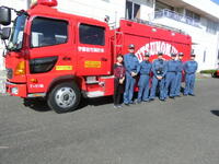 5年生が総合的な学習の時間に「地域の安全守り隊」という単元で防災についての調べ学習を始めます。各自の調べ学習に先駆けて,中央消防署の消防士さん方にご来校いただき,講話とポンプ車体験を実施しました。