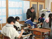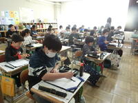 筆の持ち方,文字の形の捉え方,運筆のコツなどを丁寧に教えていただきました。児童は,予め決めていた「今年の漢字」を実際に筆で書いてみて,毛筆の難しさを改めて実感した様子でした。ボランティア様のアドバイスを聞きながら2枚目,3枚目と書いていくうちに,文字の形が少しずつ整っていったようです。